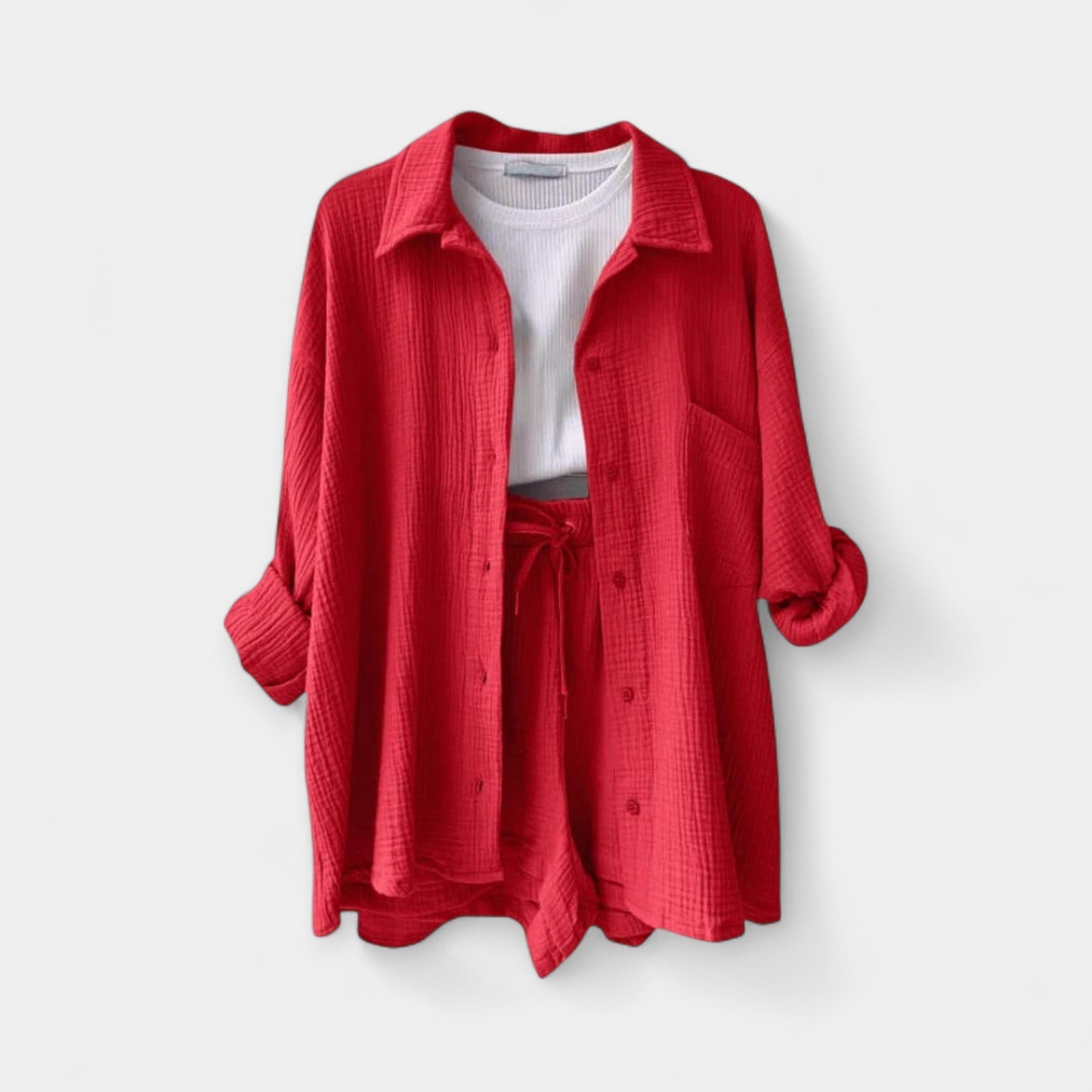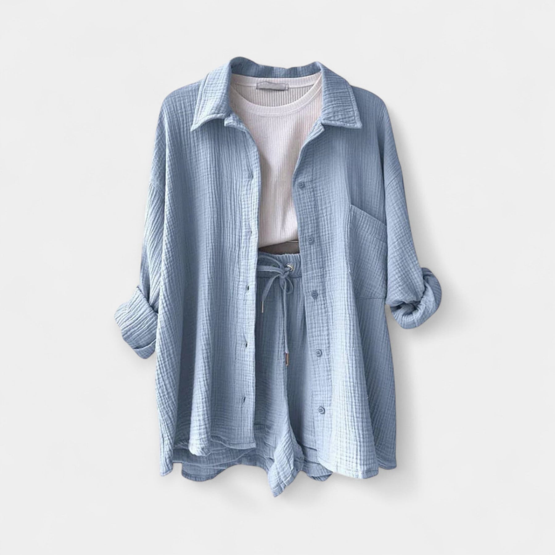 A light and elegant set for the hottest days of the year. Perfect for poolside moments, strolls, or stylish and comfortable summer getaways.