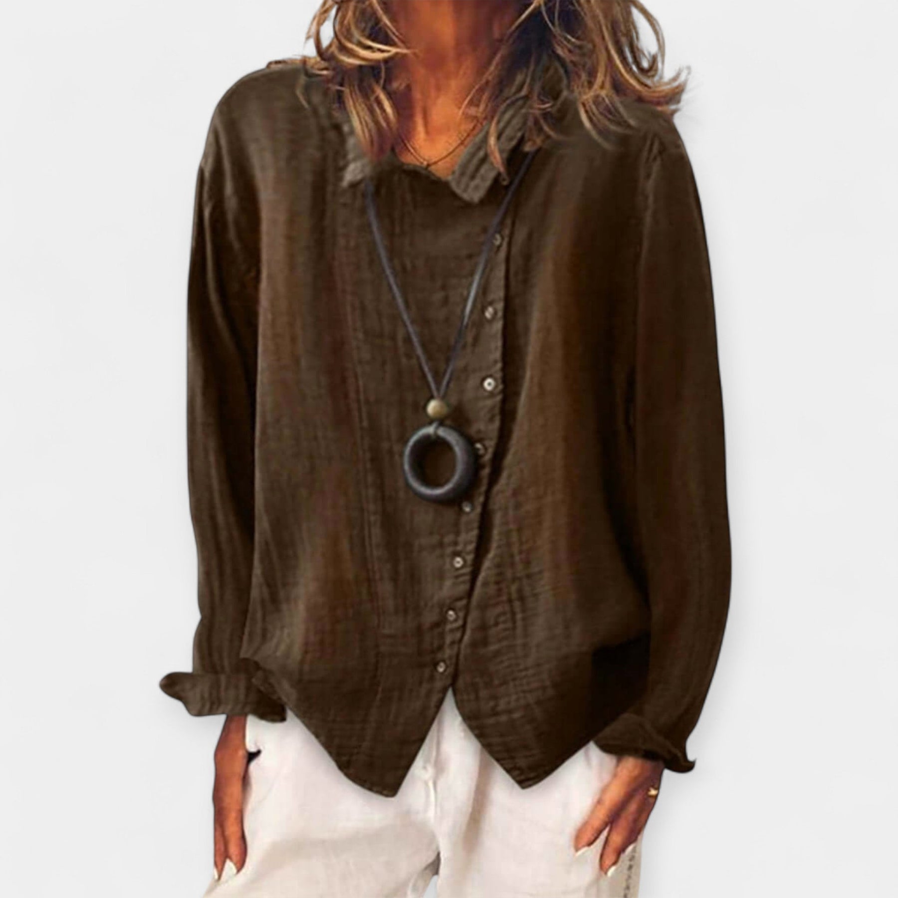 Made from a lightweight blend of cotton and linen for effortless comfort and style. With a relaxed H-line fit and long sleeves, it’s perfect for spring and summer days. Pair it with leggings, jeans, or wear it on its own for an effortless yet polished look.