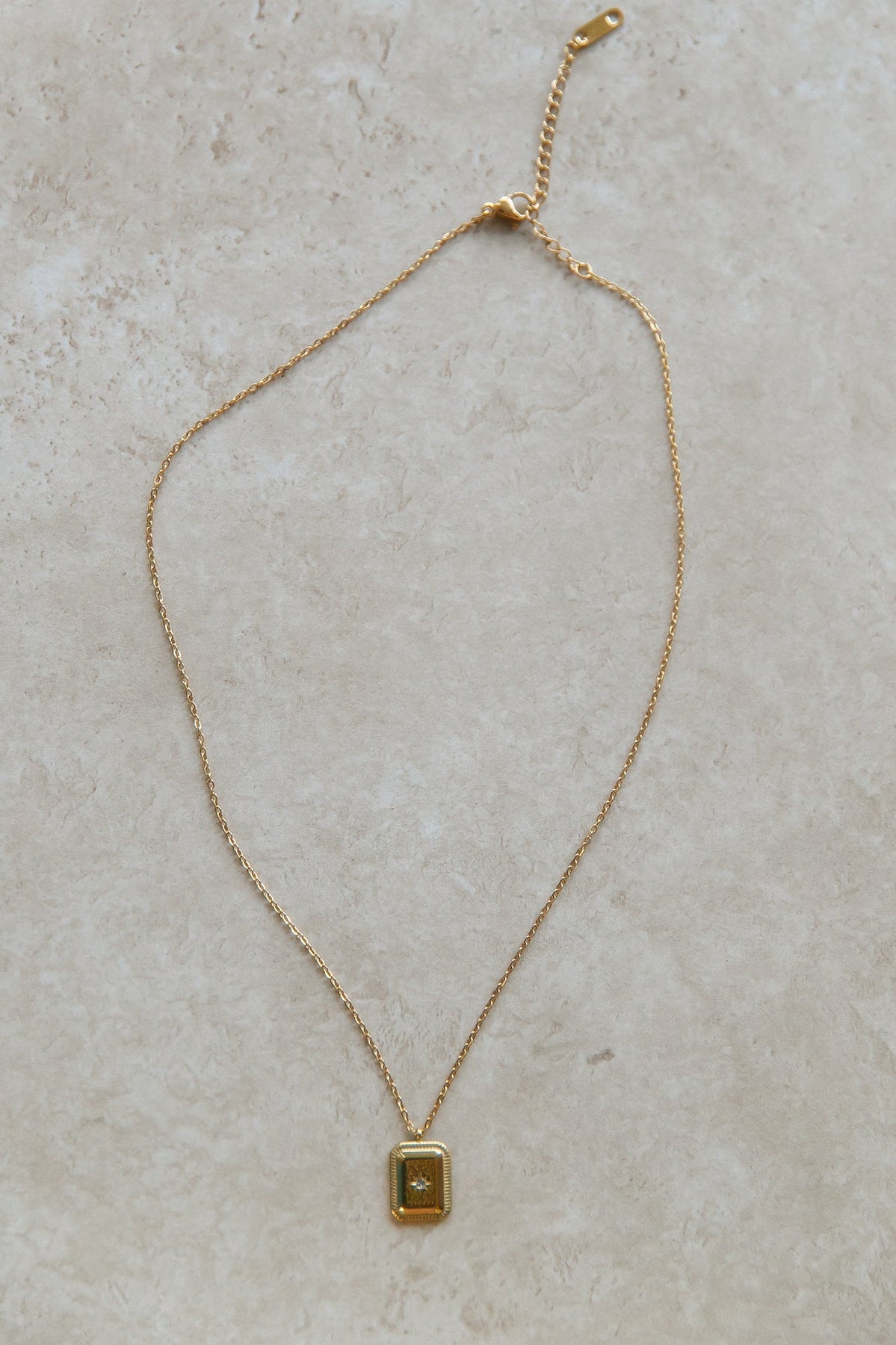 Enjoy all the most beautiful Starry Sights with this piece by your side. This stunning necklace features a sleek, delicate chain, completed with a rectangular pendant.