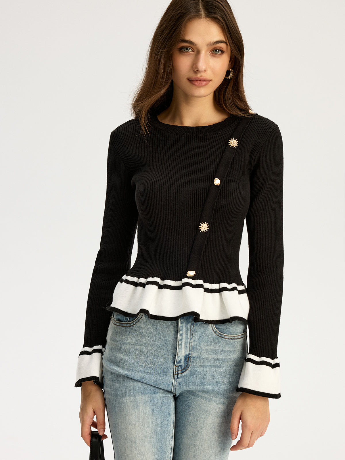 Contrast Ruffled Hem Sweater  Liora Lane Boutique Sweaters Black / XL 94.99