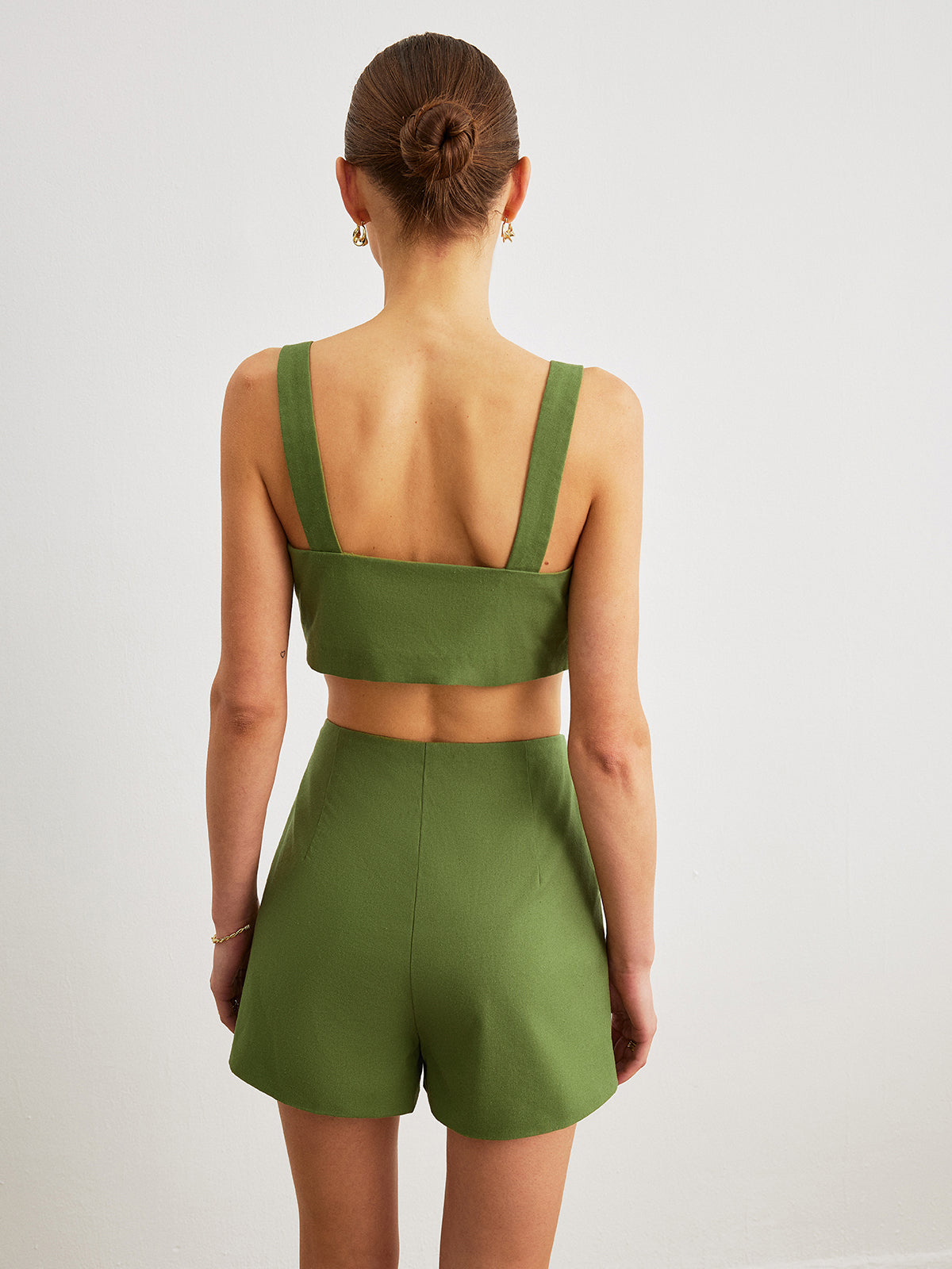 Cotton & Linen Floral Embroidery Metal Detail Shorts Set