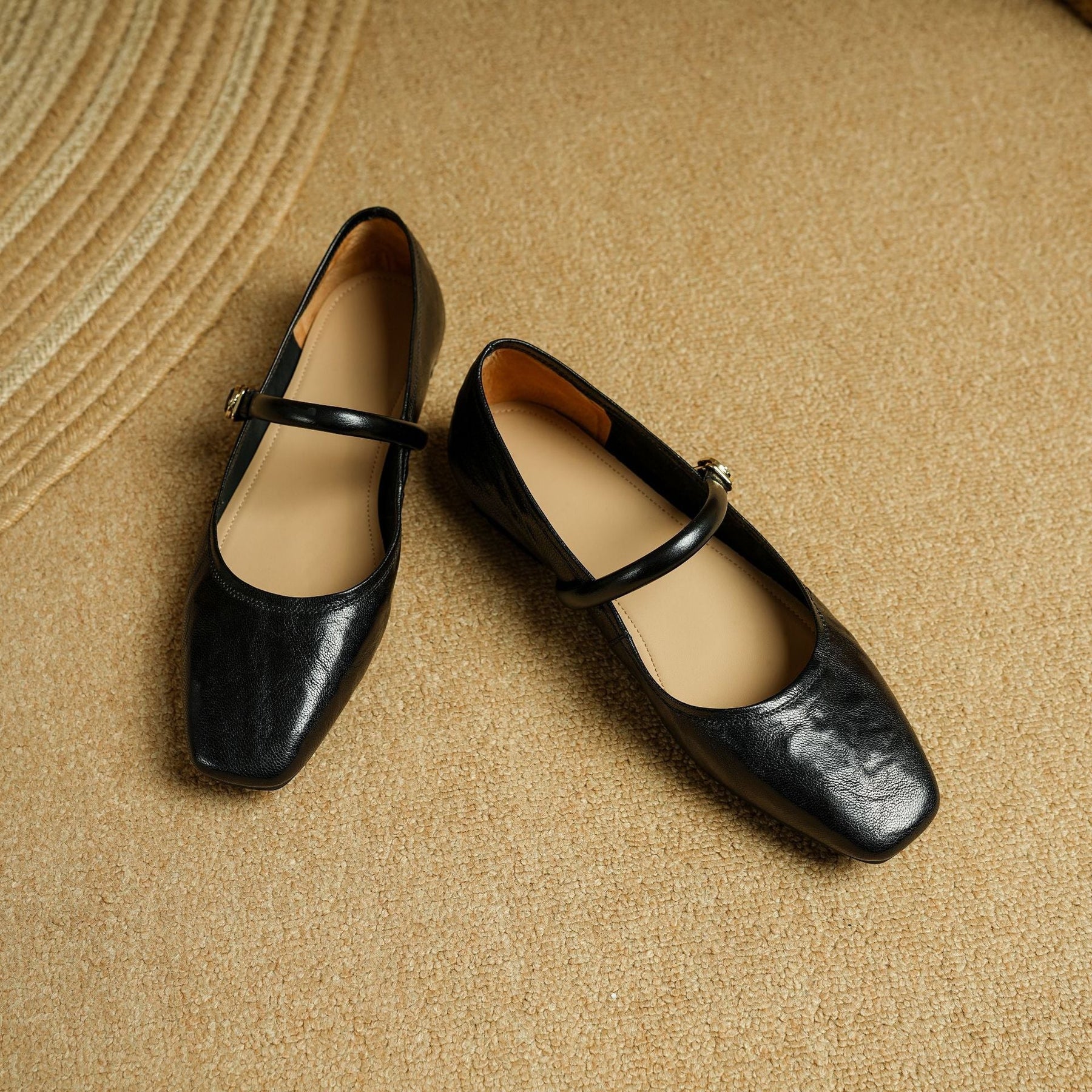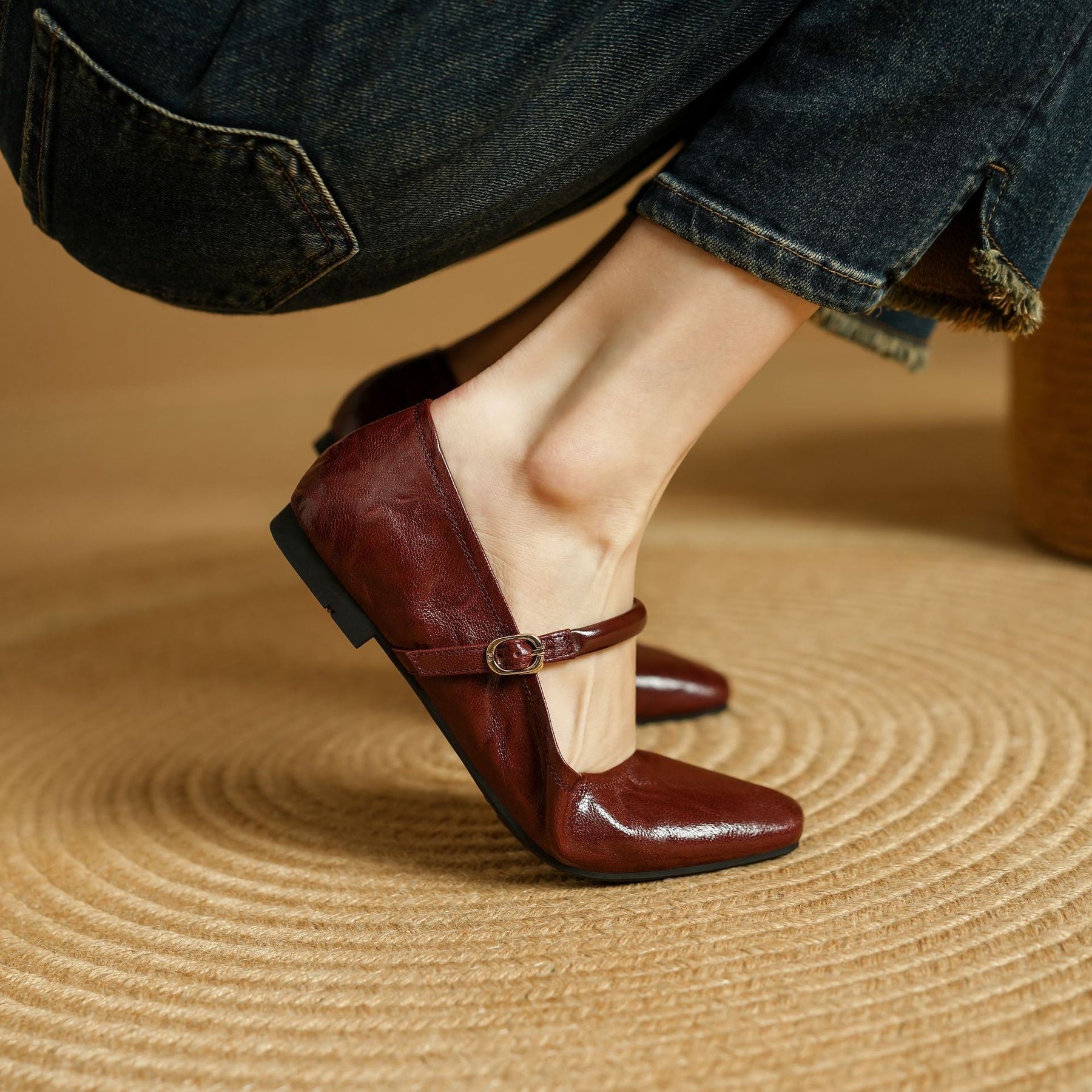 Richly grained genuine leather sculpts the sleek silhouette of these buckle-strap flats, styled with a square toe and softened by a foam-padded insole, perfect for any casually refined look.