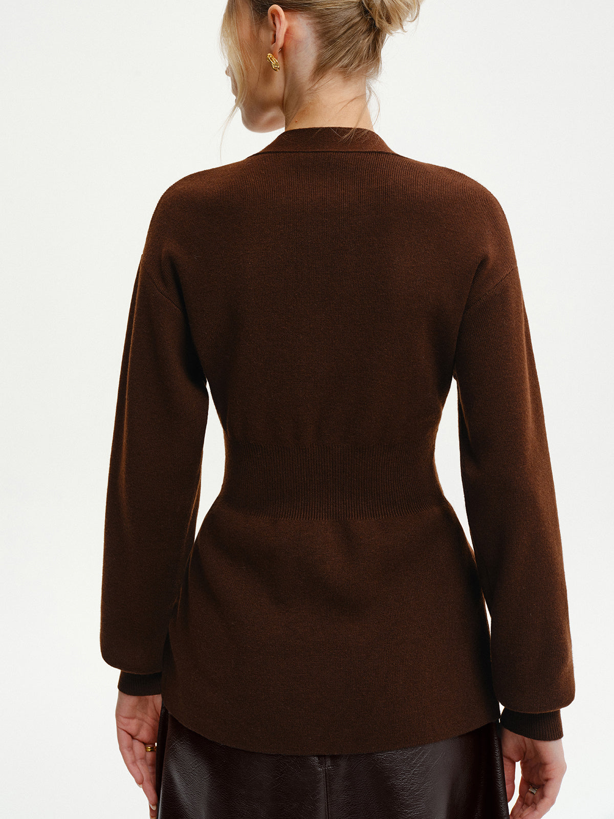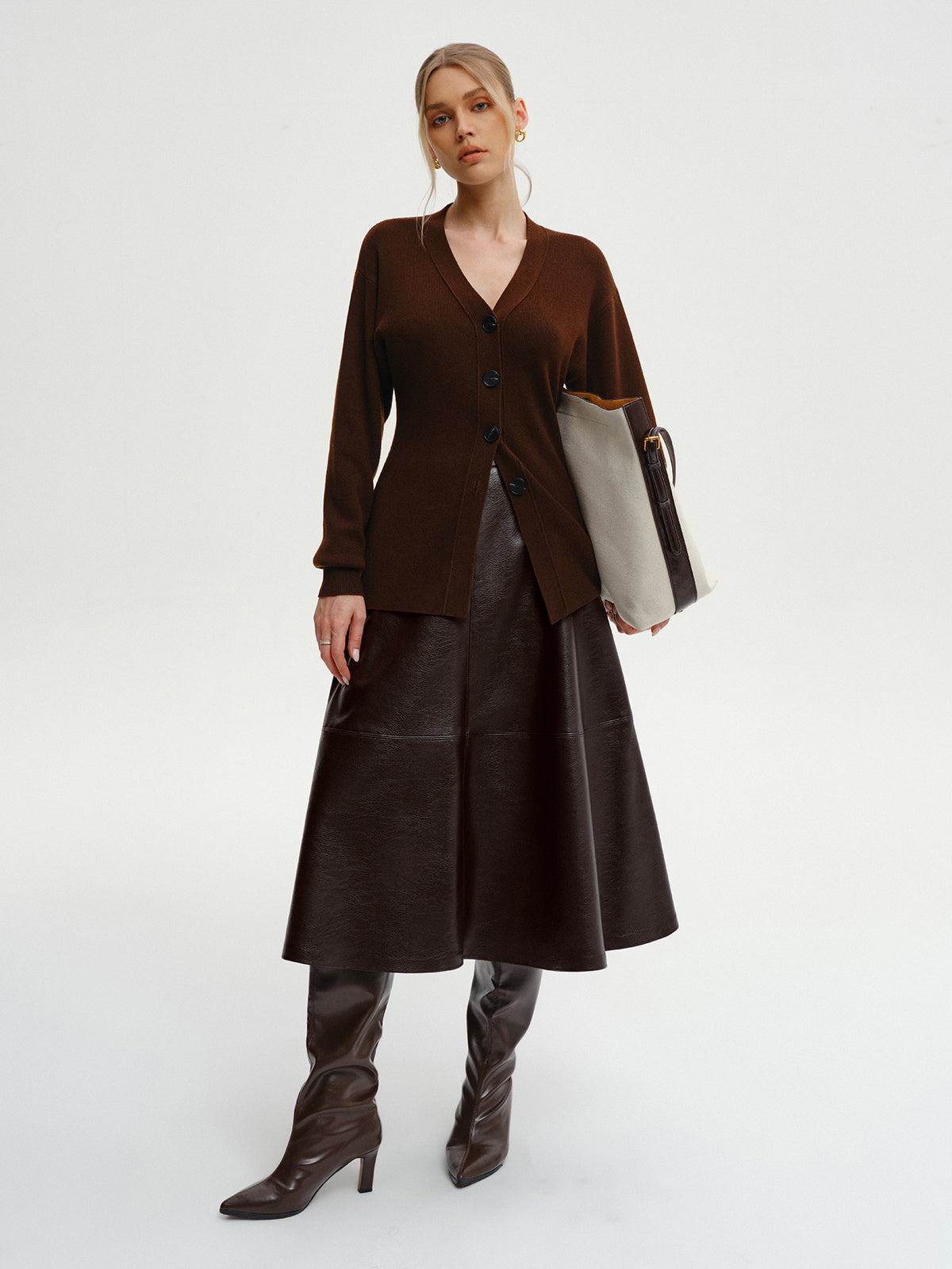 Wool-Blend V-Neck Button-Down Cardigan  Liora Lane Boutique Cardigans Dark Brown / XL 59.00