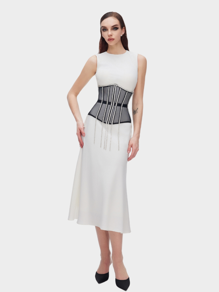 Turn heads with the Midnight Elegance Rhinestone Corset. Crafted with sleek black fabric and dazzling rhinestone-trimmed boning, it’s the perfect mix of bold allure and refined sophistication.