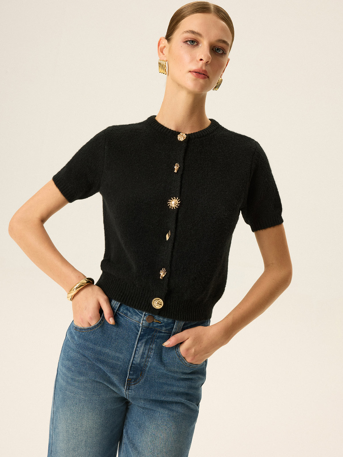 Metal Detail Knit Cardigan  Liora Lane Boutique Cardigans