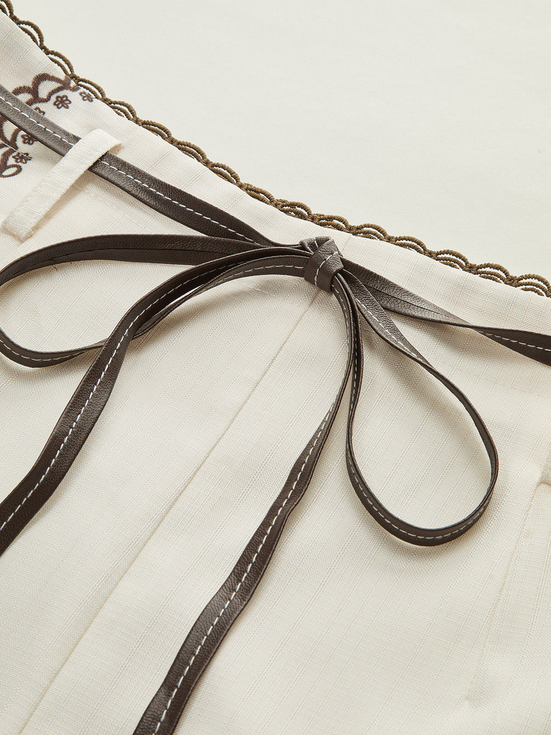Floral Printed Suit Shorts with Lace Trims and Belt  Liora Lane Boutique Shorts Off-White / XL 34.00