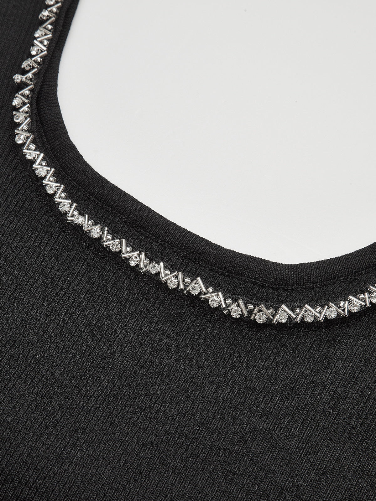 Rhinestone-Embellished Slim Fit Mini Dress  Liora Lane Boutique Sweater Dresses Black / XL 56.00