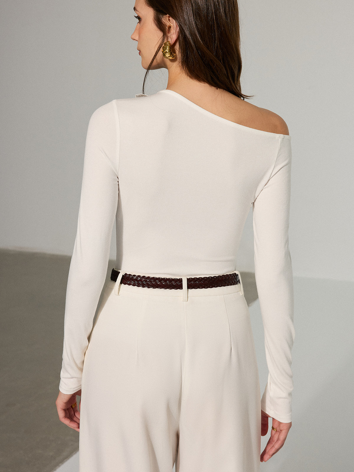 Off-Shoulder 3D Floral Embellished T-Shirt