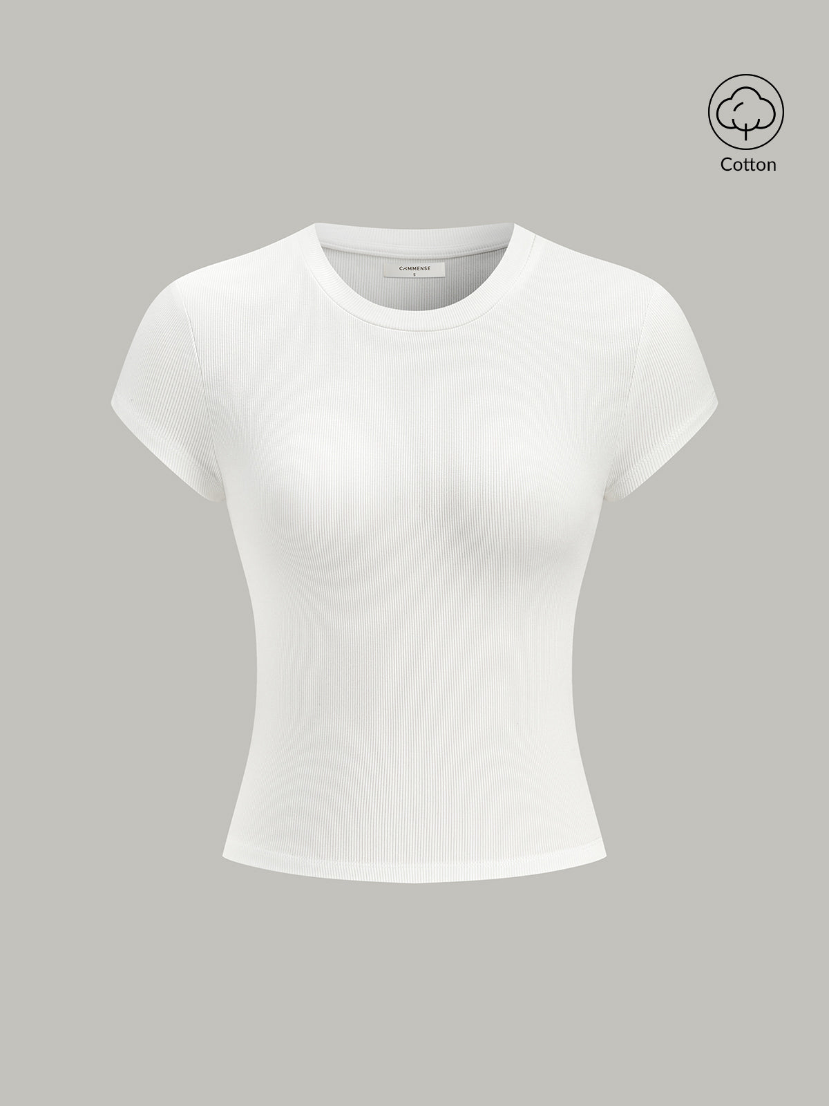 Ribbed Crew Neck Short Sleeve Cotton-Blend Top