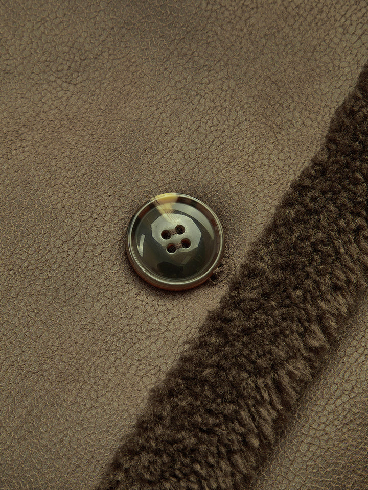Double-Breasted Fleece Lined Faux Leather Longline Coat