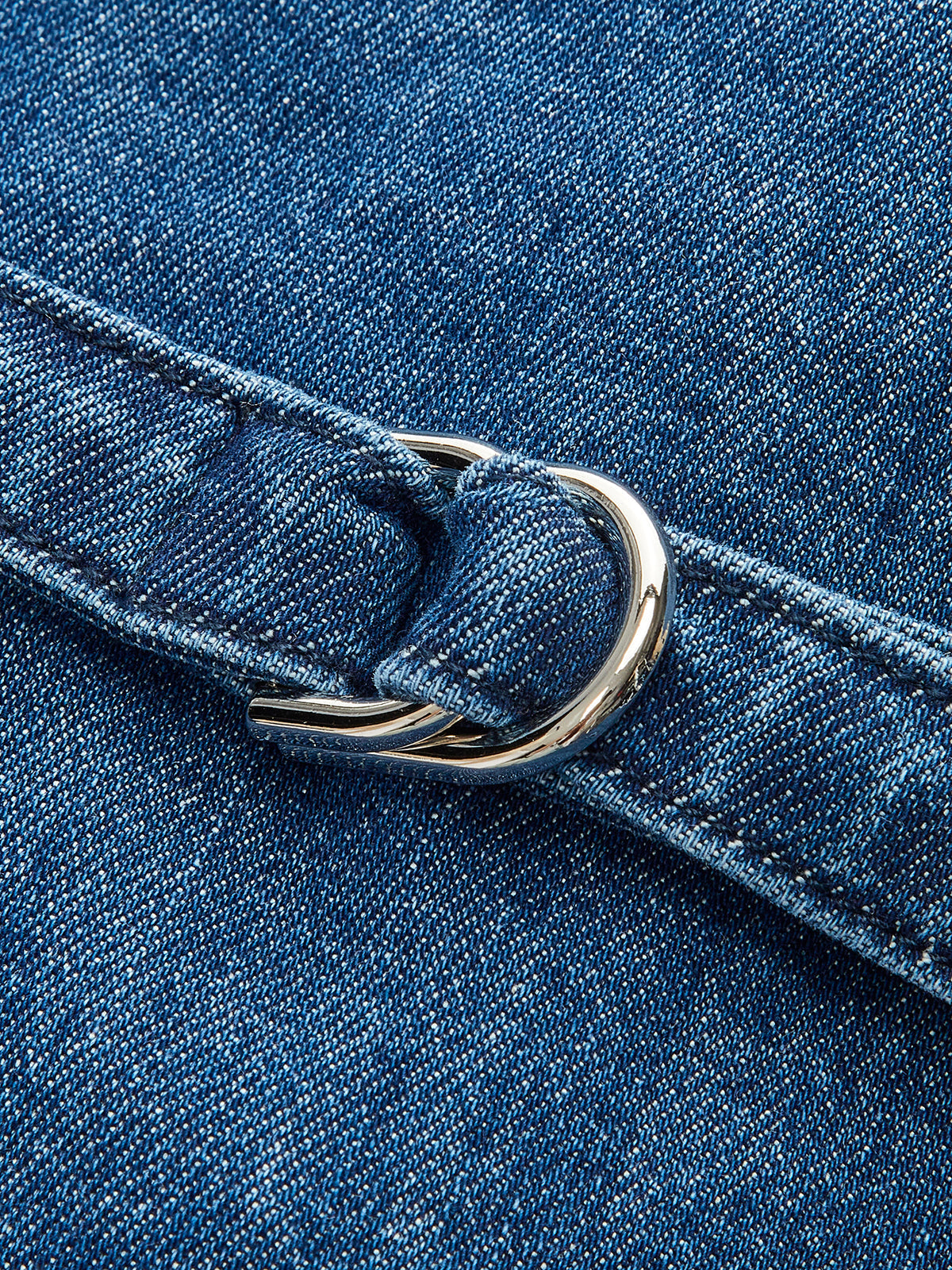 Metal Button Tie-Back Denim V-Neck Shorts Set