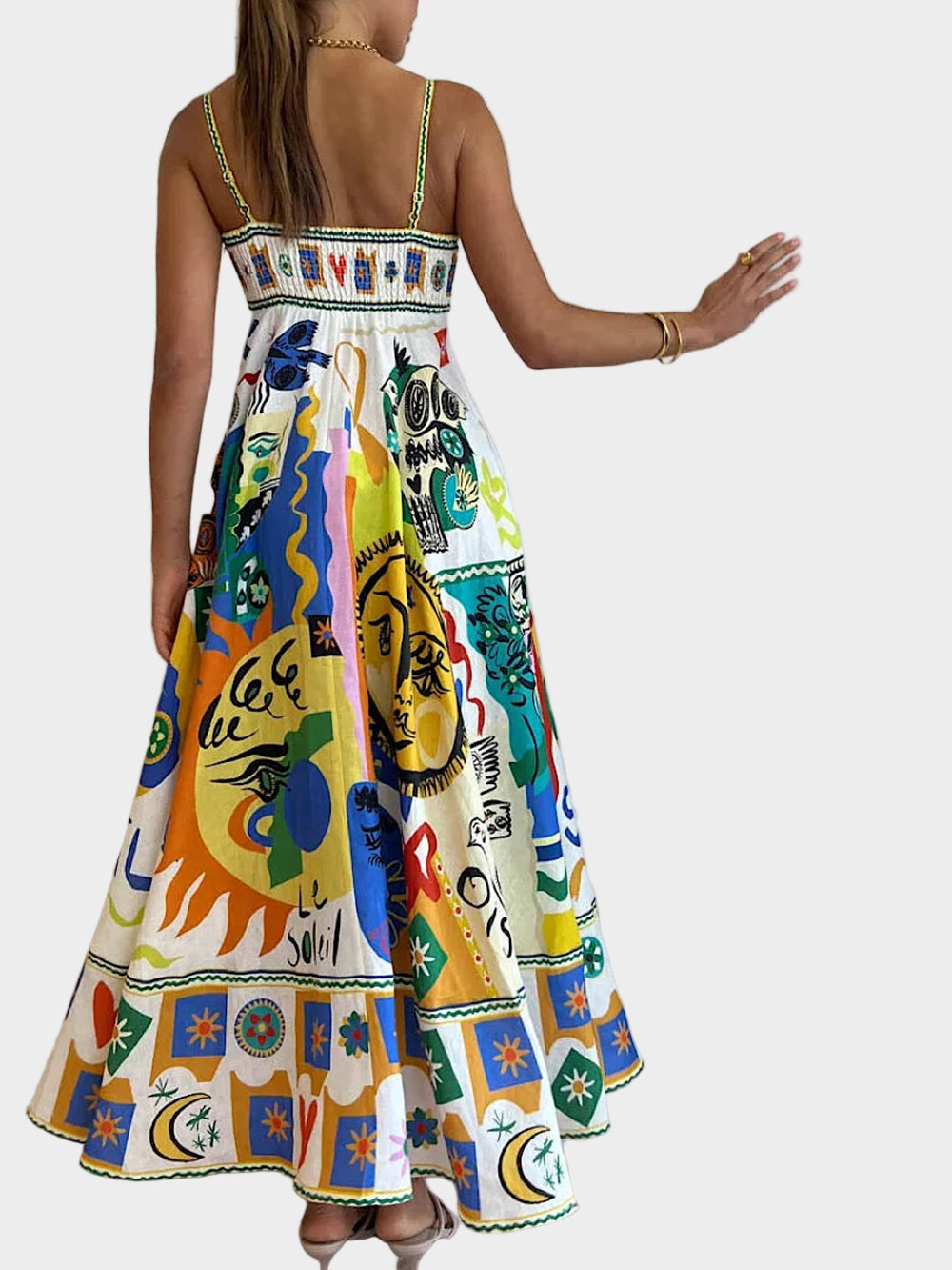 The Geometric Graffiti Elegant Dress blends bold artistry with modern sophistication. Its geometric graffiti-inspired print and sleek silhouette create a striking look perfect for standout occasions.