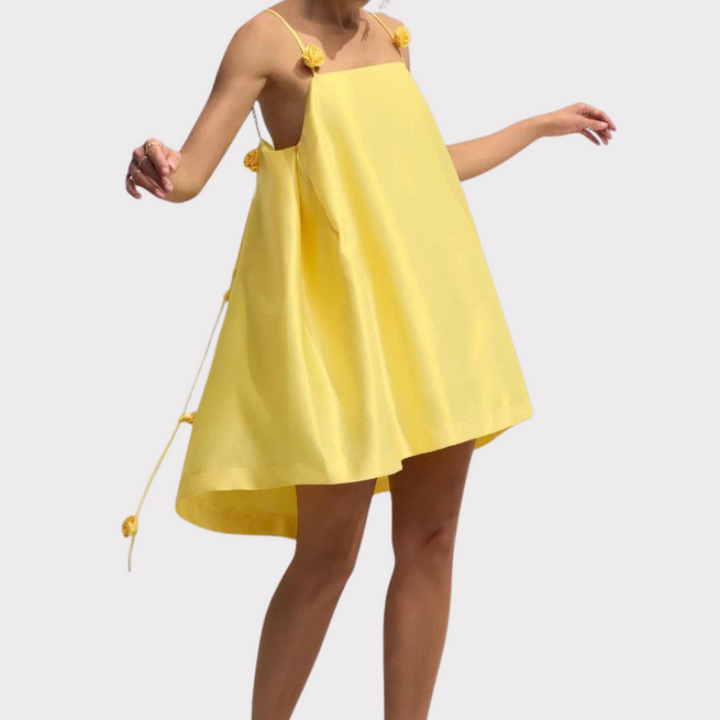 Romantic and playful, the Hedda Dress offers a fresh take on classic femininity. Designed with delicate spaghetti straps, a sculpted bodice, and a statement rose detail at the neckline, it’s the perfect choice for date nights, garden parties, or any moment that calls for charm.