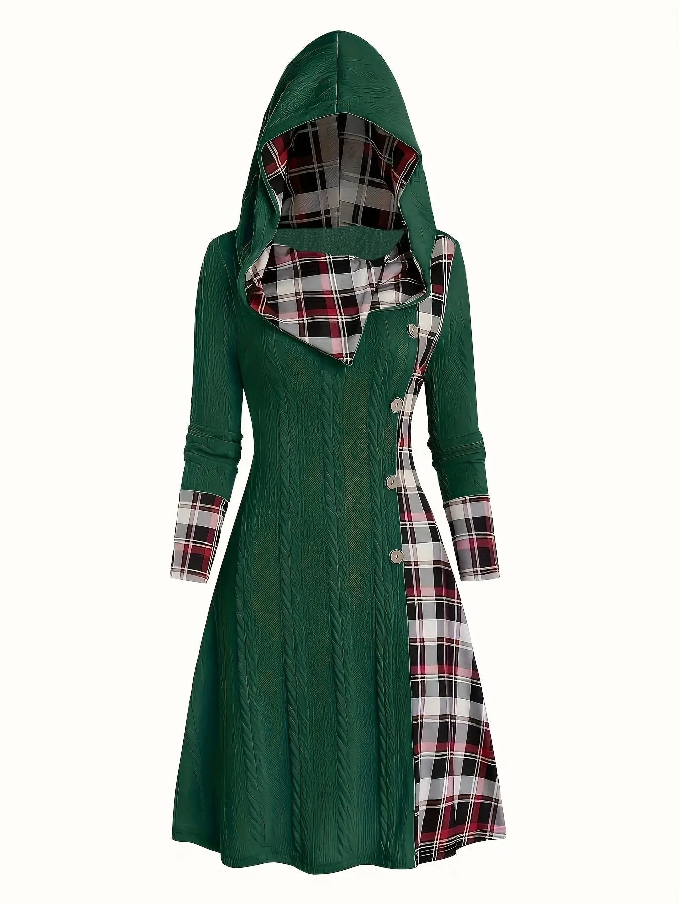 The Highland Plaid Knit Dress combines cozy charm with a touch of rustic elegance. Featuring a soft cable knit texture, an asymmetrical plaid accent, and a stylish button-down detail, it’s perfect for cool-weather outings.