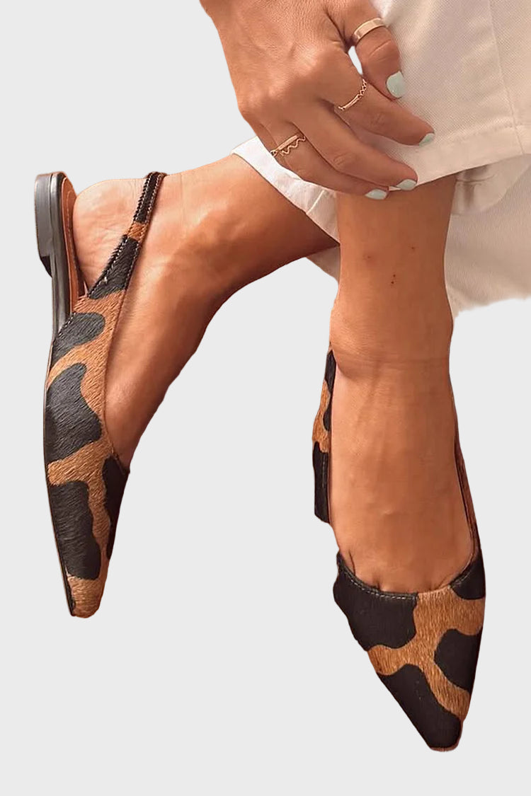 Step into everyday elegance with the Savannah Chic Slingback Flats. Designed with a bold animal-print pattern and a sleek pointed toe, these flats perfectly balance comfort and contemporary style. The slingback strap adds ease and flair, making them a versatile choice for casual outings or polished looks.