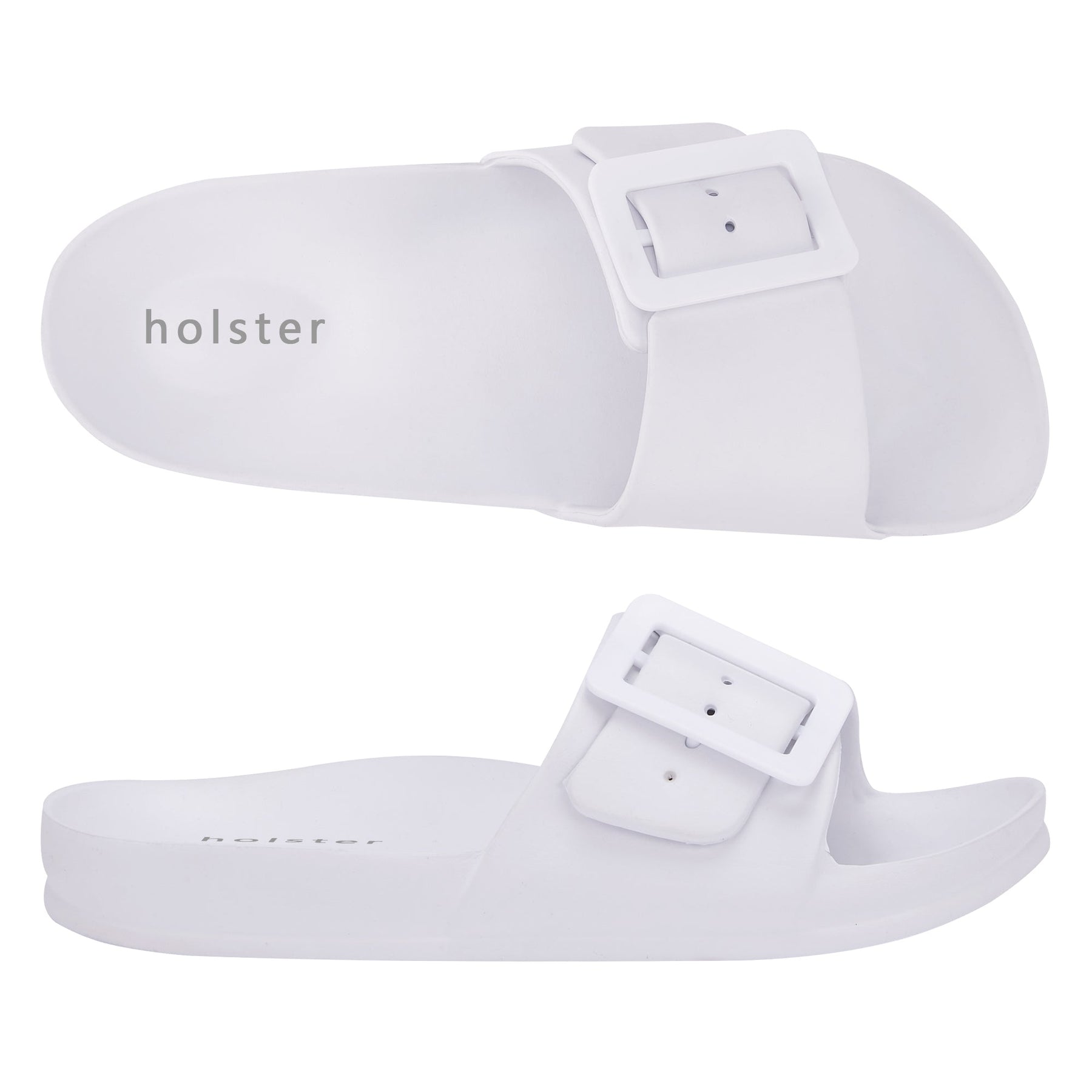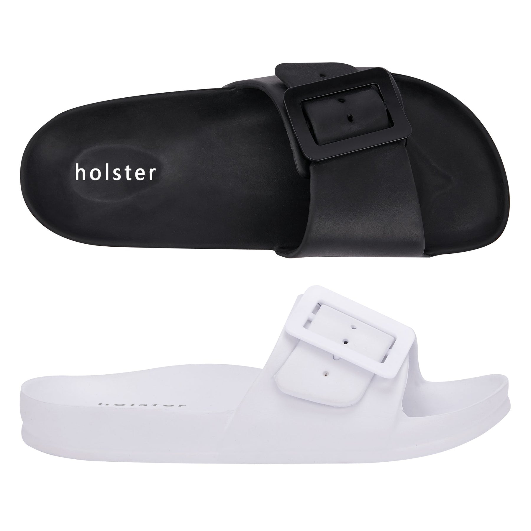 The Black & White Single Buckle Slide Sandals are the ultimate combination of simplicity and modern style. Featuring a wide strap with a bold oversized buckle, these slides are perfect for those who love effortless fashion. With both black and white options in this bundle, you can match them with any outfit for casual days, poolside lounging, or everyday wear.