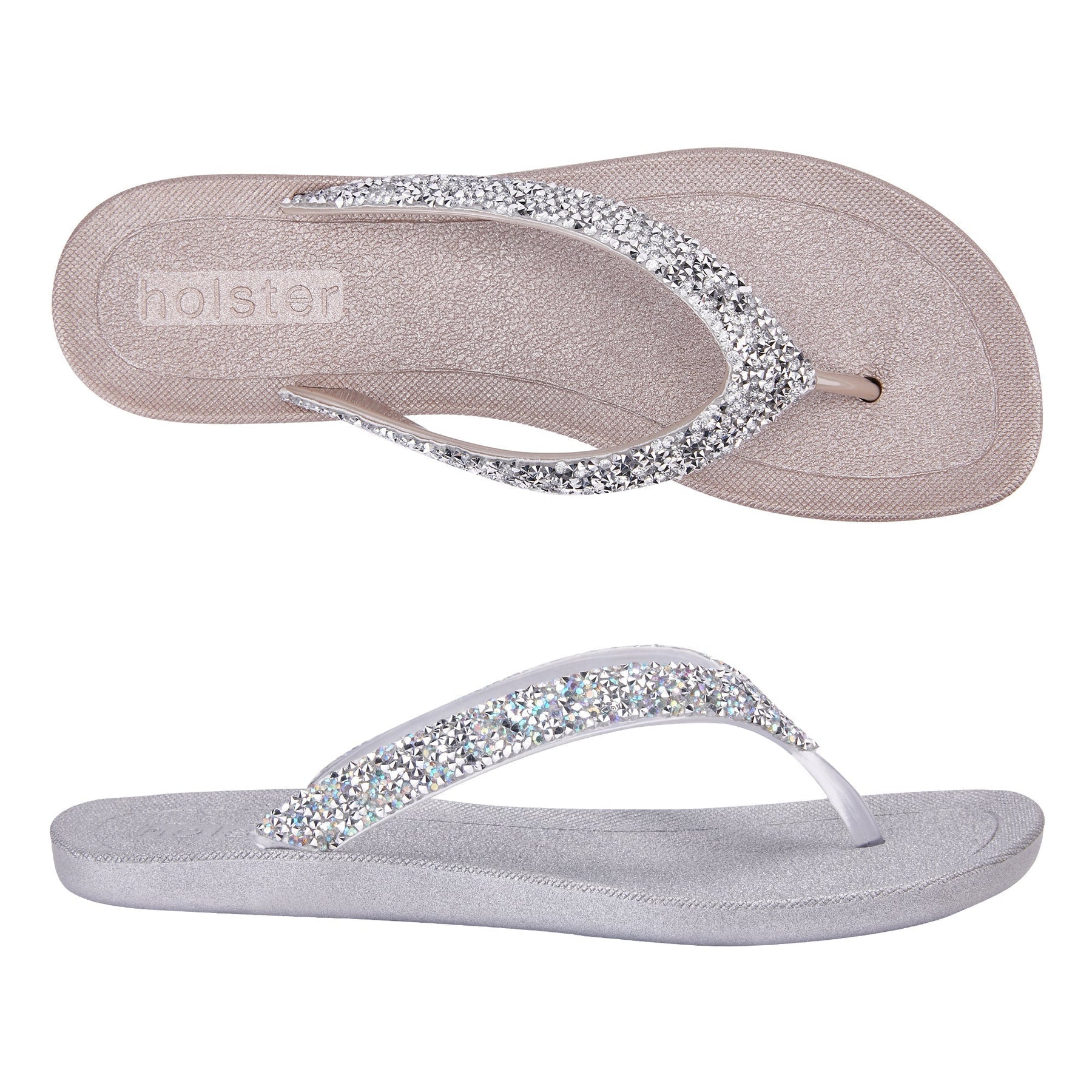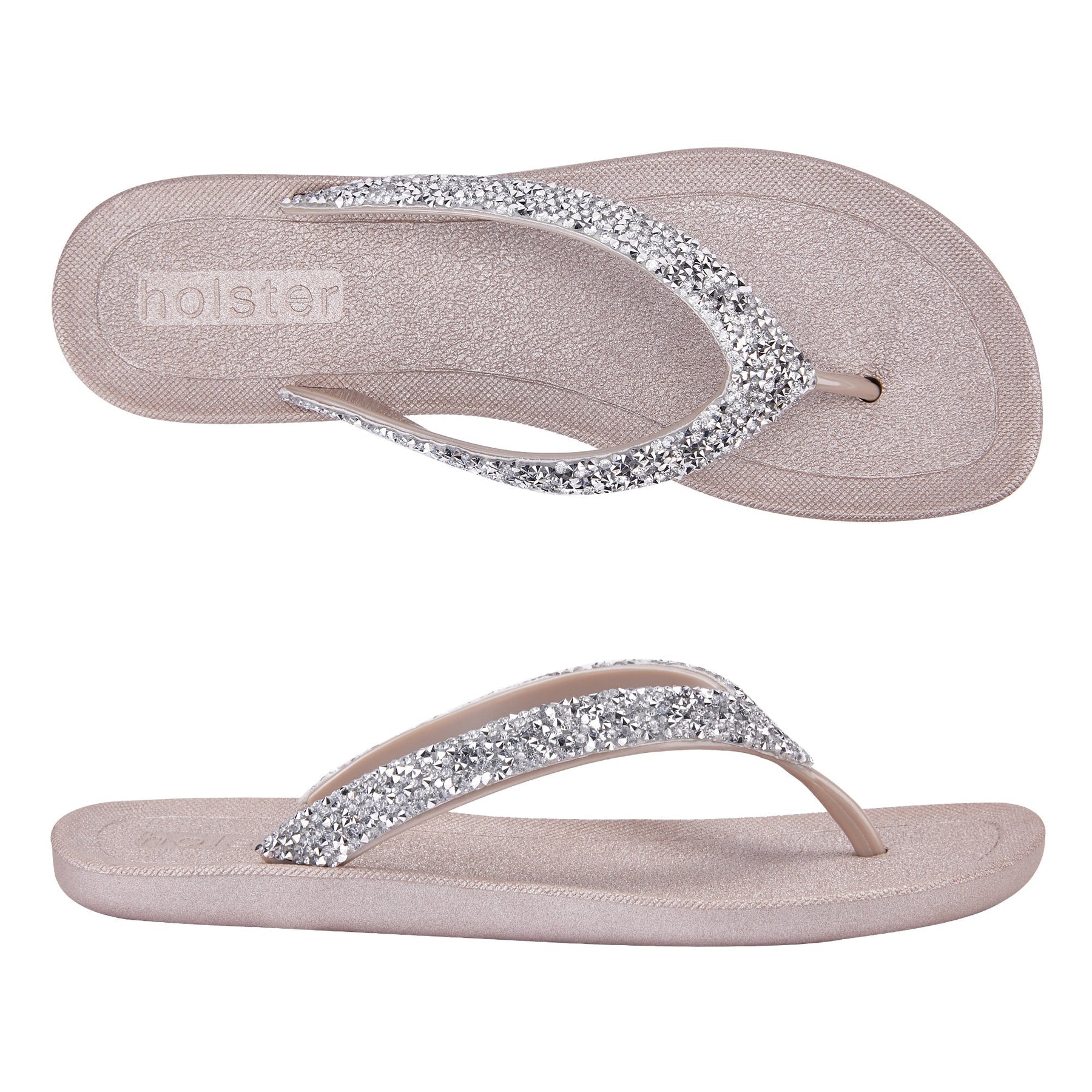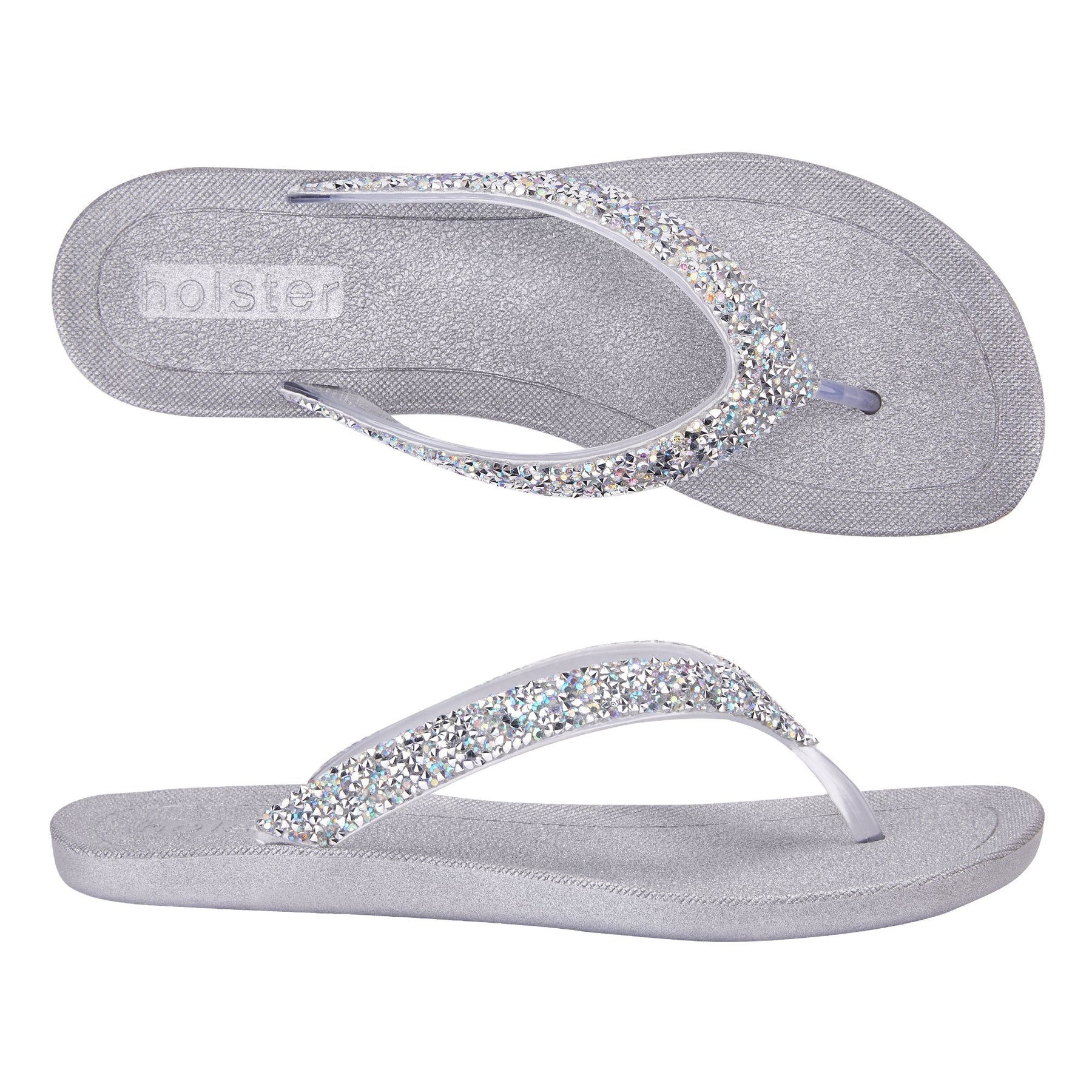 The Sparkle Glow Flip Flops add a radiant touch to your warm-weather look. With shimmering crystal accents and a lightweight thong design, they deliver both glamour and comfort for everyday wear.