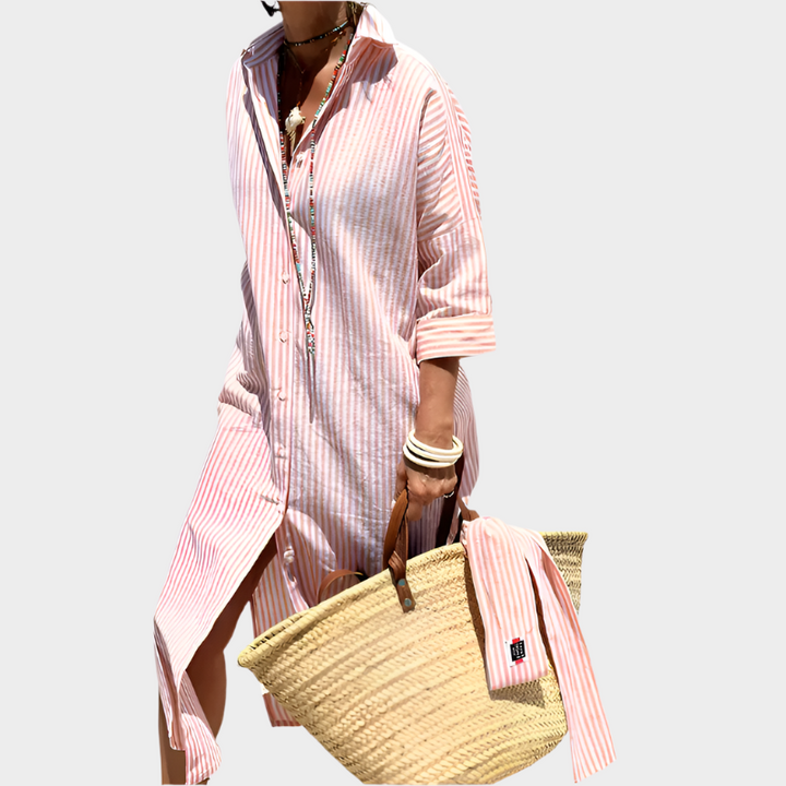 Embrace the laid-back style of summer with the Striped Midi Dress. Perfect for strolls on the island or relaxed days in the city, this dress combines comfort with timeless elegance.