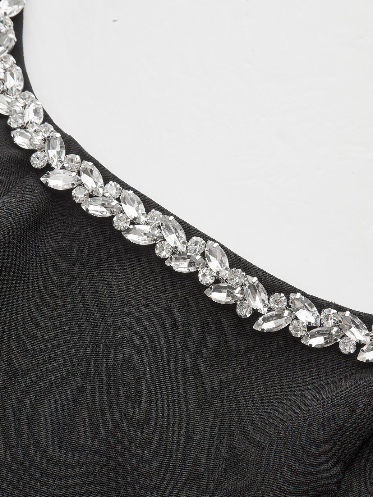Sleeveless Square Neck Diamond Trim Flare Dress