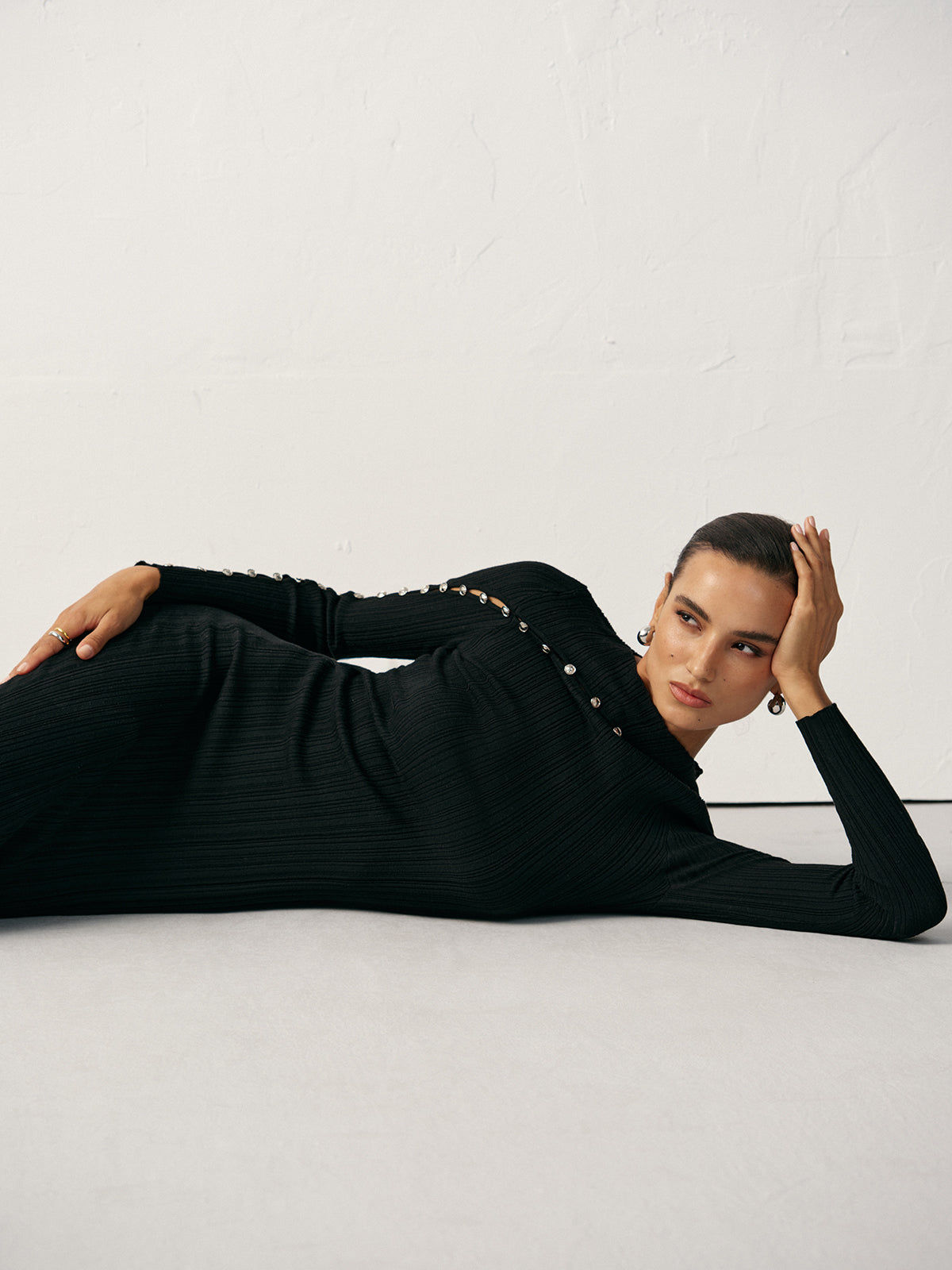 Textured Pearl Wool Blend Fitted Sweater Dress