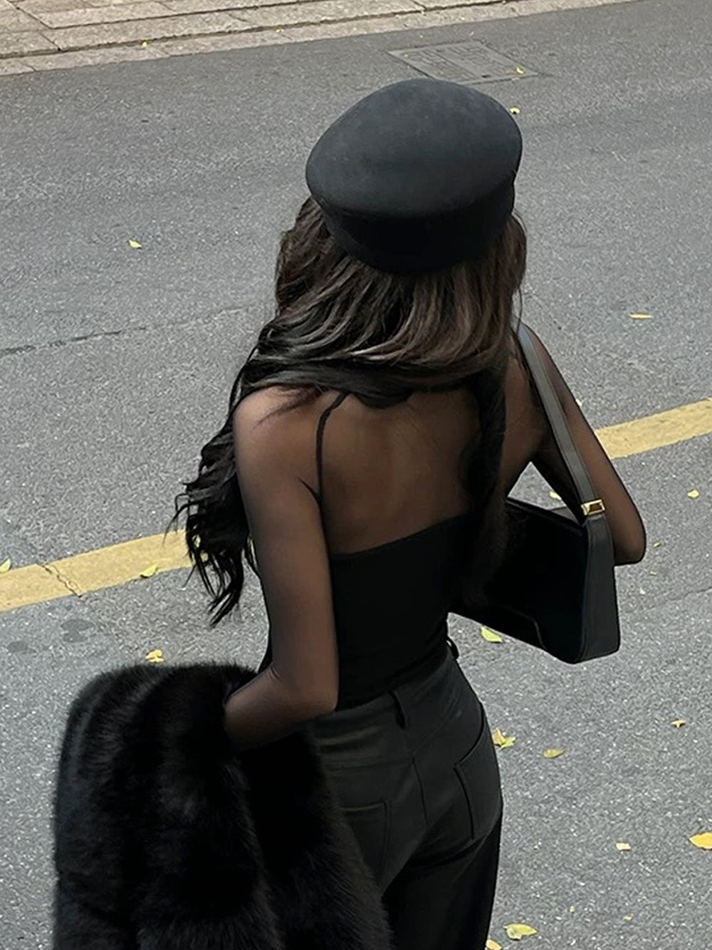 Square Neck Sheer Panel Crop T-Shirt  Liora Lane Boutique T-Shirts Black / XL 22.00